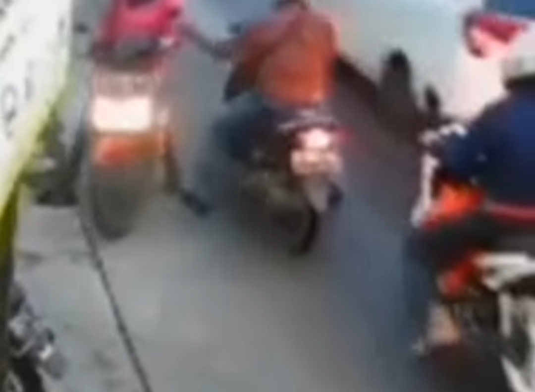 Pelaku dalam video itu memakai helm putih dan jaket berwarna merah.