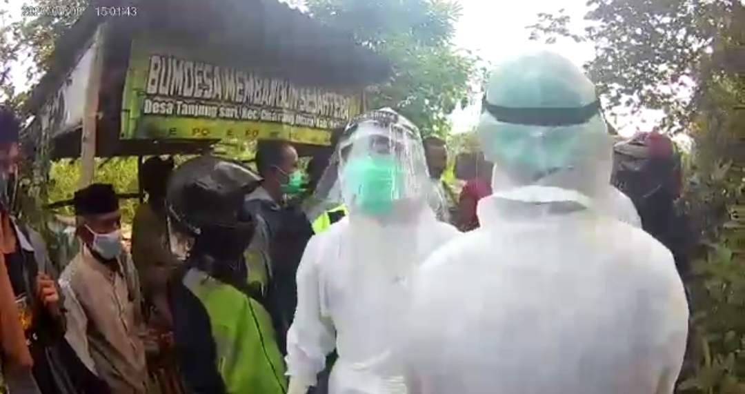 Menurut dia, kehadiran petugas di kampung itu untuk memakamkan salah satu warga setempat yang meninggal. Soal apakah jenazah itu diduga korban Covid-18, Alin belum mengetahuinya. “Untuk pemakaman sih tidak masalah, sudah dimakamkan. Tapi masalahnya karena cara berpakaian petugas saja,” jelasnya.