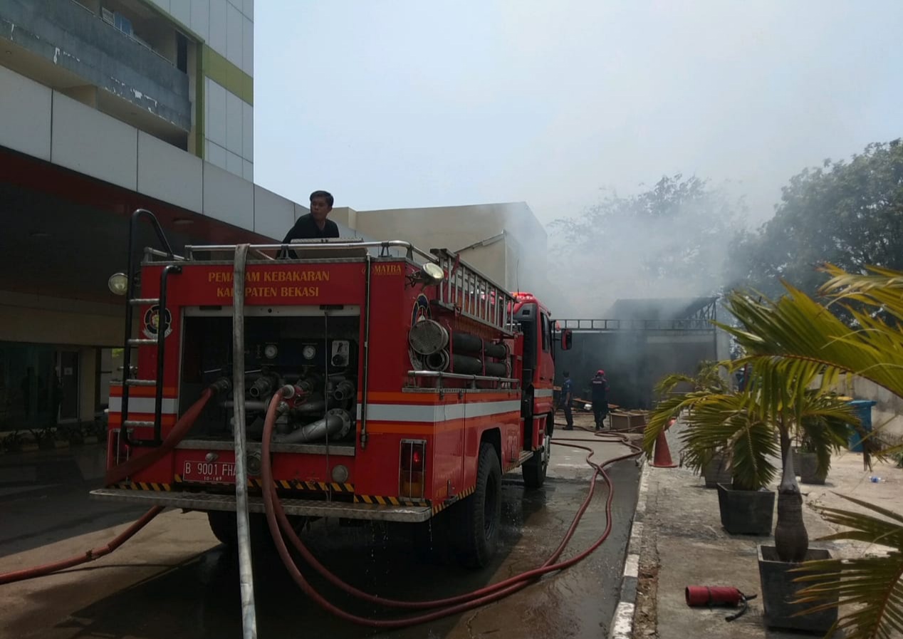 Salah satu bangunan Rumah Sakit Daerah Umum (RSUD) Kabupaten Bekasi yang terletak diJalan Raya Teuku Umar, Cibitung, Sabtu 5 September 2020 terbakar. Api dengan cepat melalap ruangan limbah milik rumah sakit plat merah itu.