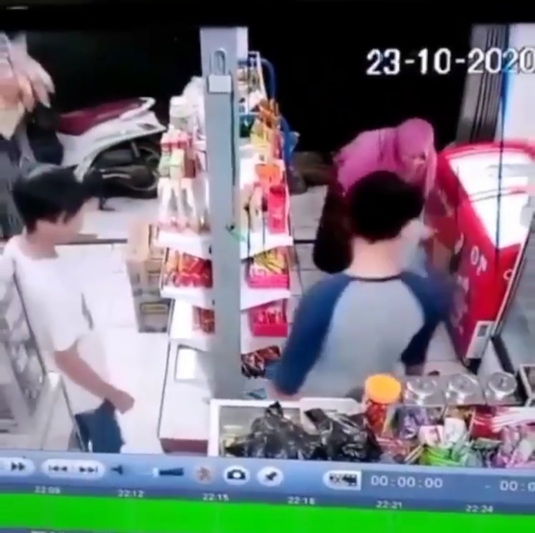 Dalam video itu, lelaki yang disebut pamannya itu menendang bokong balita itu dengan sekuat tenaga di depan lemari es di sebuah warung.